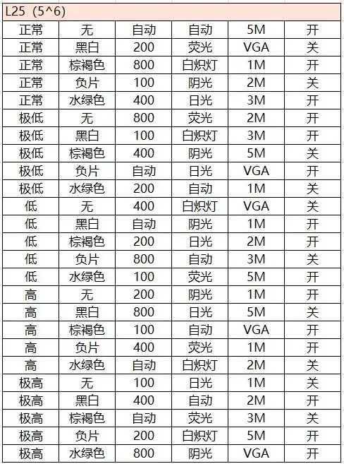 # 输出设计表格,每个因素的水平值都在递增范围内